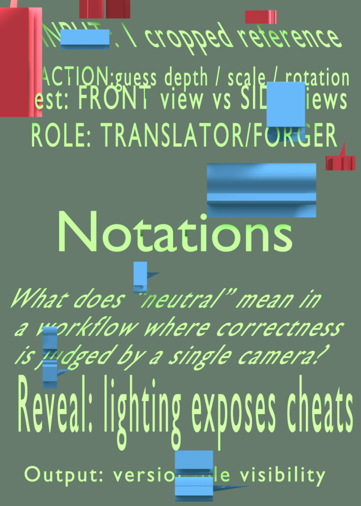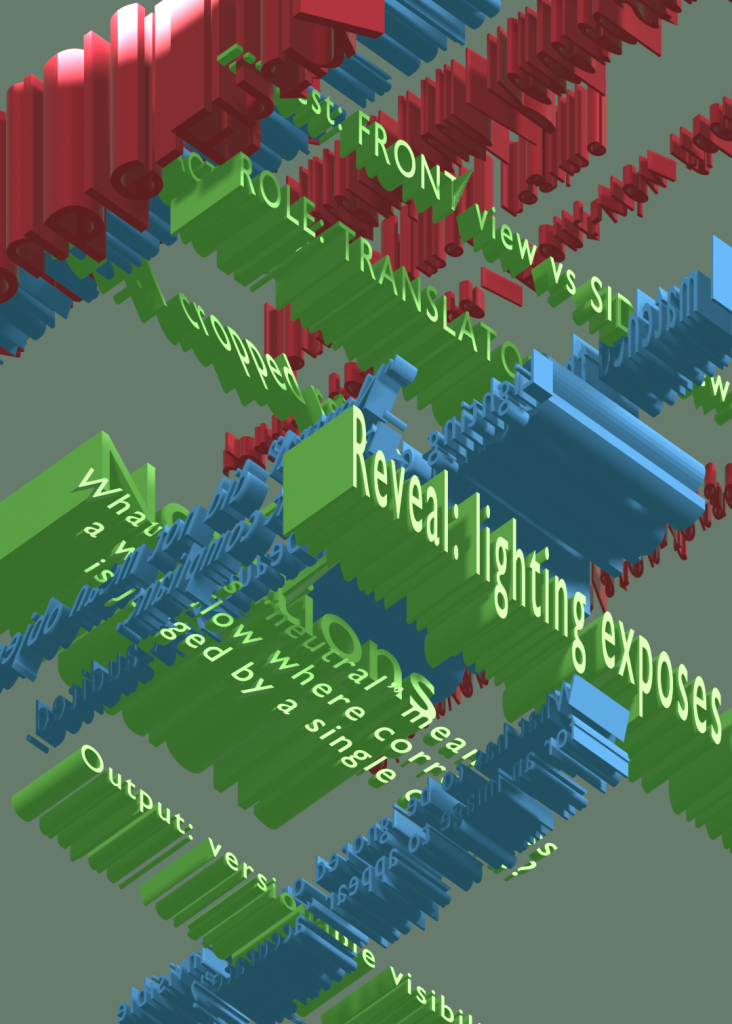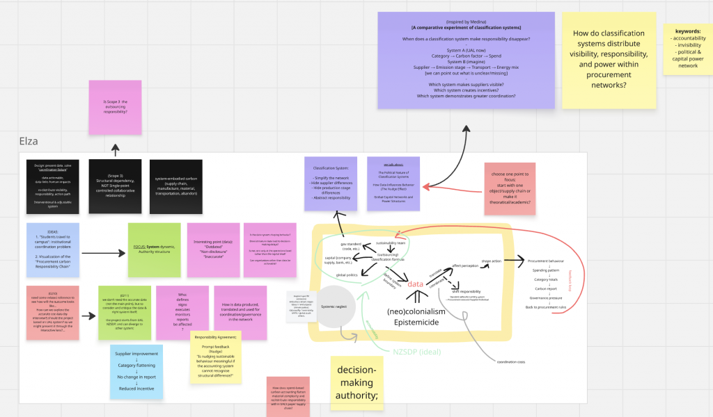 Star also legitimised the “invisible work” I heard repeatedly from technicians—ad-hoc fixes, informal guidance, and constant patching that keeps workflows moving (Star, 1999, pp.385–386 ). Once I recognised how many variables shape coordination (budgets, time pressure, training, local norms, procurement constraints, signage, and interpersonal networks), proposing a single solution felt reductive. Instead, my position shifted toward designing an engaging interface that makes breakdowns, gaps, and responsibility-shifts experienceable—so the system can be discussed and negotiated, rather than prematurely “fixed.”